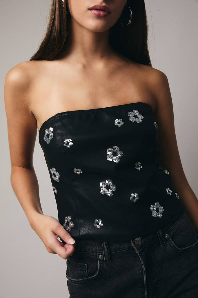Slip into pure sparkle with our Daisy Sequin Leather Tube Top—where playful meets polished. The tube top design offers effortless elegance, while the daisy-inspired sequin pattern adds a whimsical touch. Comfortable enough to wear all evening, bold enough to turn heads. Your new favourite party essential.