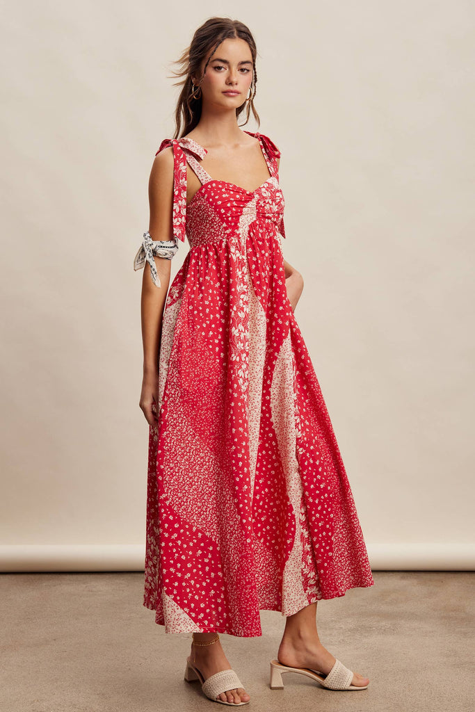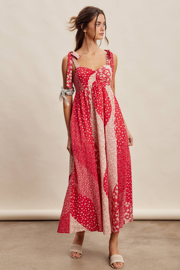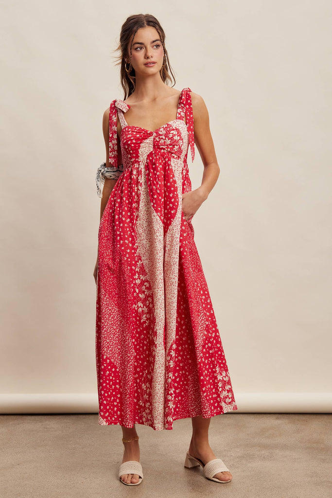 Patchwork Tie Strap Cotton Maxi Dress